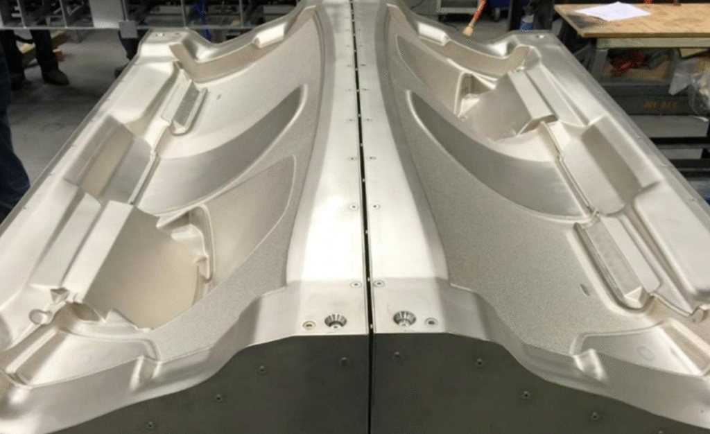 These shells are used as the “showface” in a wide range of mold systems, particularly for parts requiring Class A finishes, tight tolerances, or embedded surface textures. Mounted on a variety of backings—aluminum, steel, or composite—they offer superior thermal control, faster cycle times, and longer tool life than traditional steel or electroformed molds.